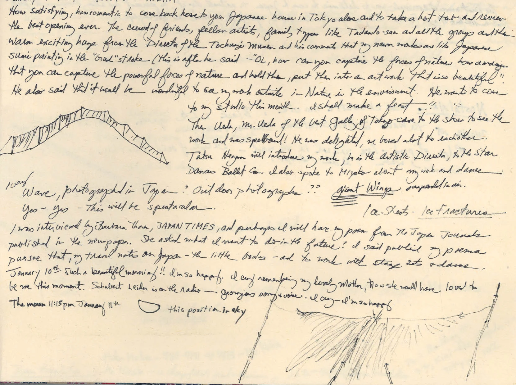 Journal entry after Tokyo opening – 1983
